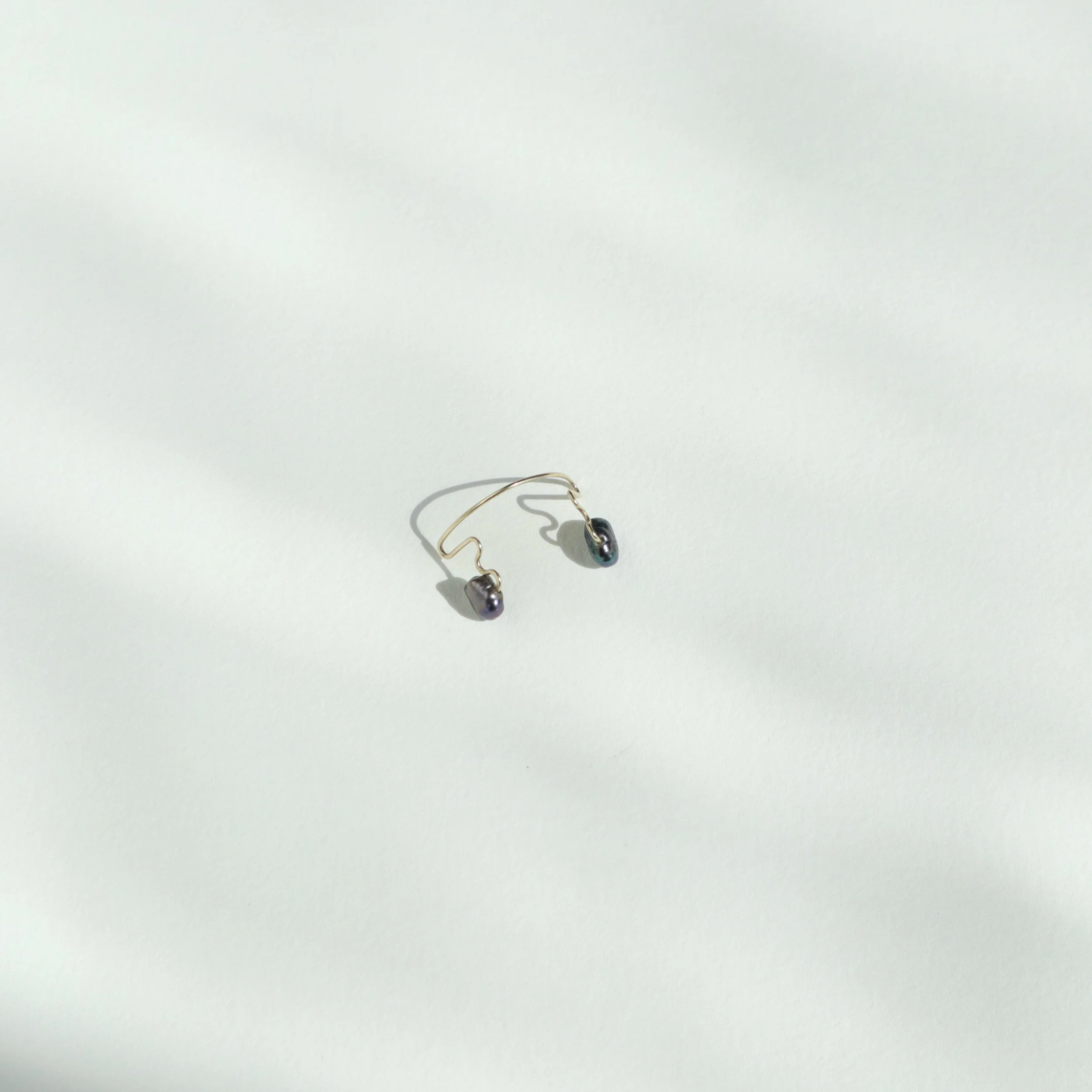 The Ethereal Bridge Cuff emerged from a period of creative constraint and isolation. Considering jewelry as personal expression, how can it also foster intimacy? Worn between the eyes on the bridge of the nose without piercings, this delicate piece adorned with freshwater pearls draws attention to the eyes, our most expressive point of connection. This avant-garde piece explores human interaction and evokes surreal, otherworldly beauty.